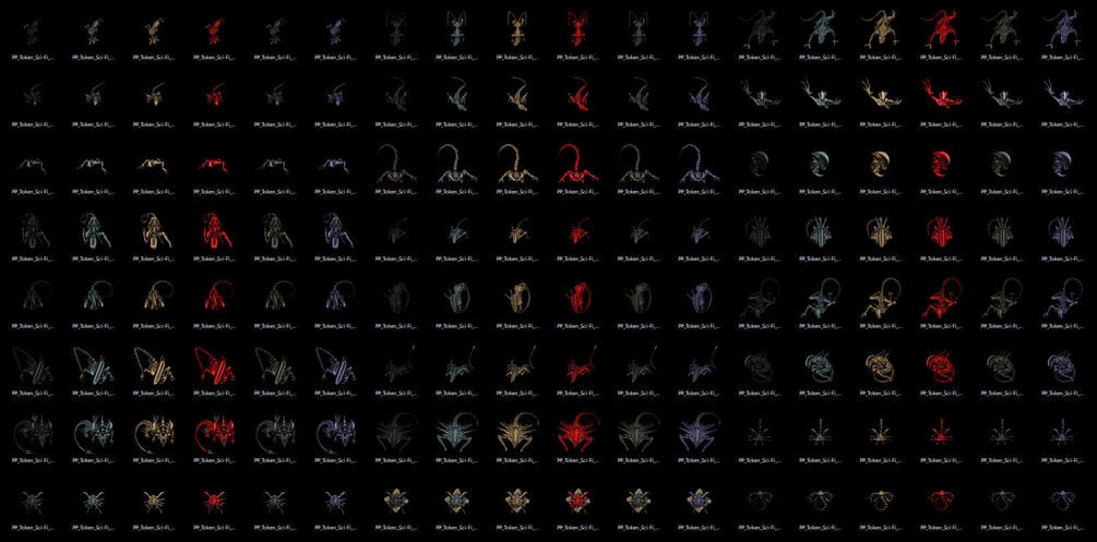 This pack features a lot of Xenomorph-Like tokens. We've got the grabby ones, eggs & nests for them to hatch out of, little larvae and infant-esque aliens for those preliminary stages of their life. Of course, there's the big bois for some player crushing madness, a large variety overall. The Obitus aliens were modelled after the Alien fellas from the Quiet Place, felt like they were a bit too cool not to include this time. I added a small variety of color variations for each token so you can quickly plug & play something different if need be. All the aliens are on the larger side of things (larger than you'd expect a xenomorph to be), this is just so that you have room to play around with the scale if you want to.